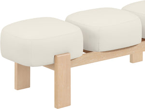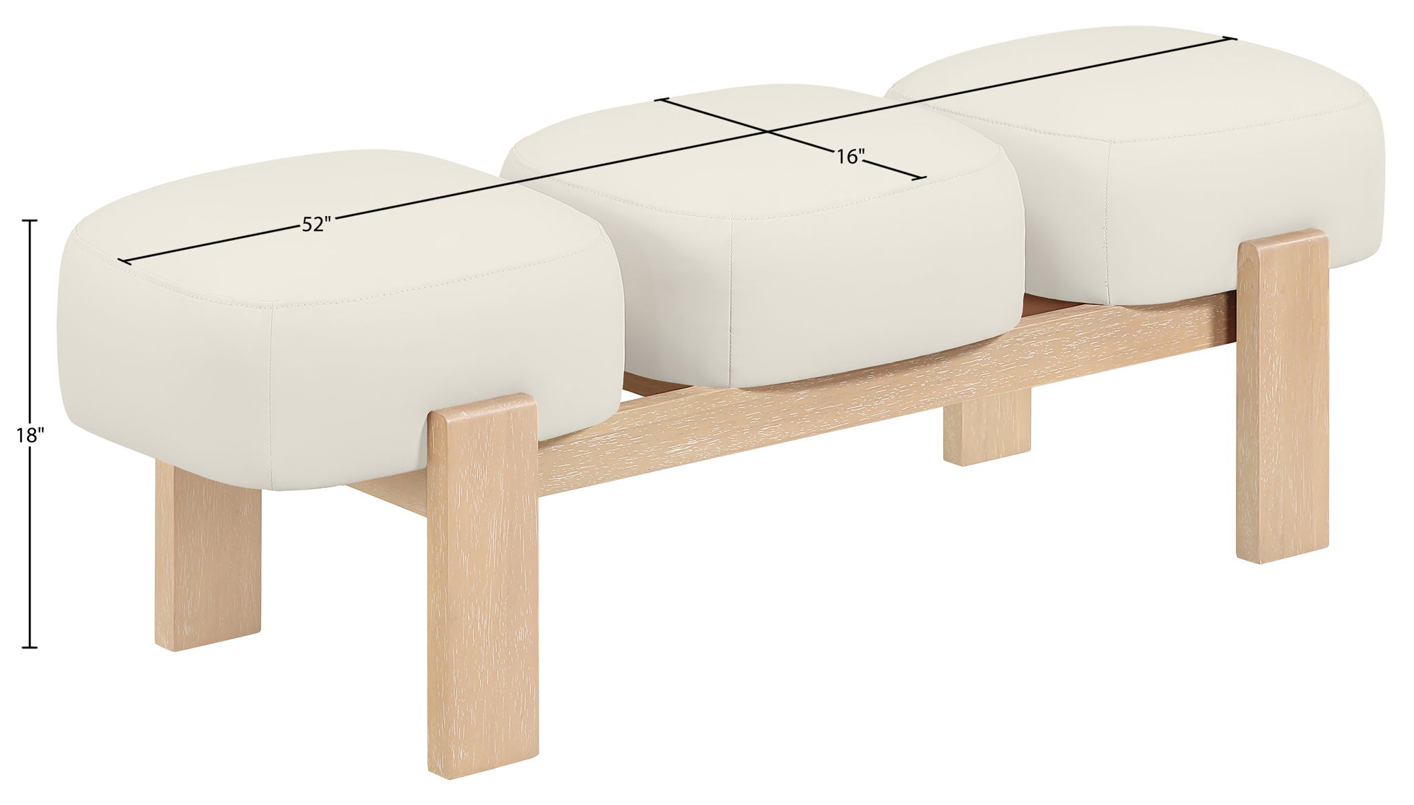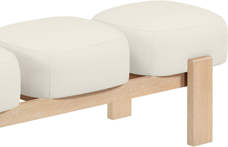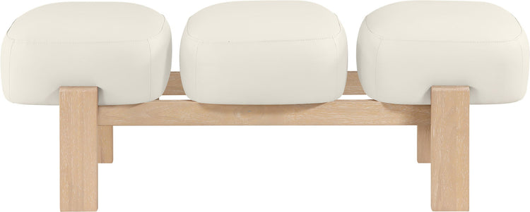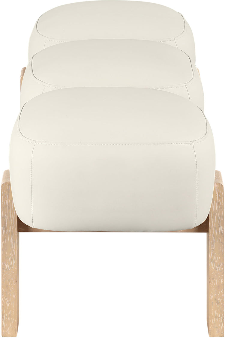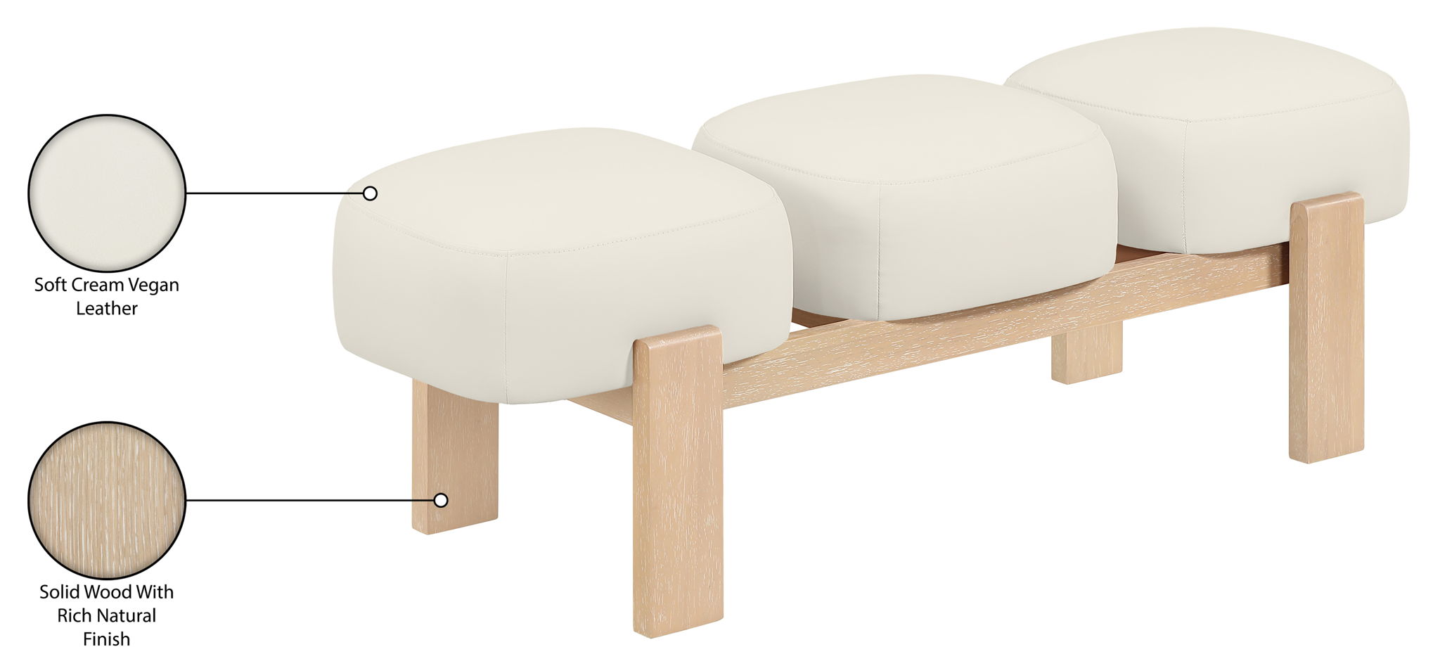 Woodcrest - Vegan Leather Upholstered Bench - Cream / Painted Natural