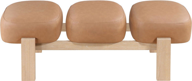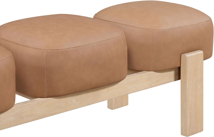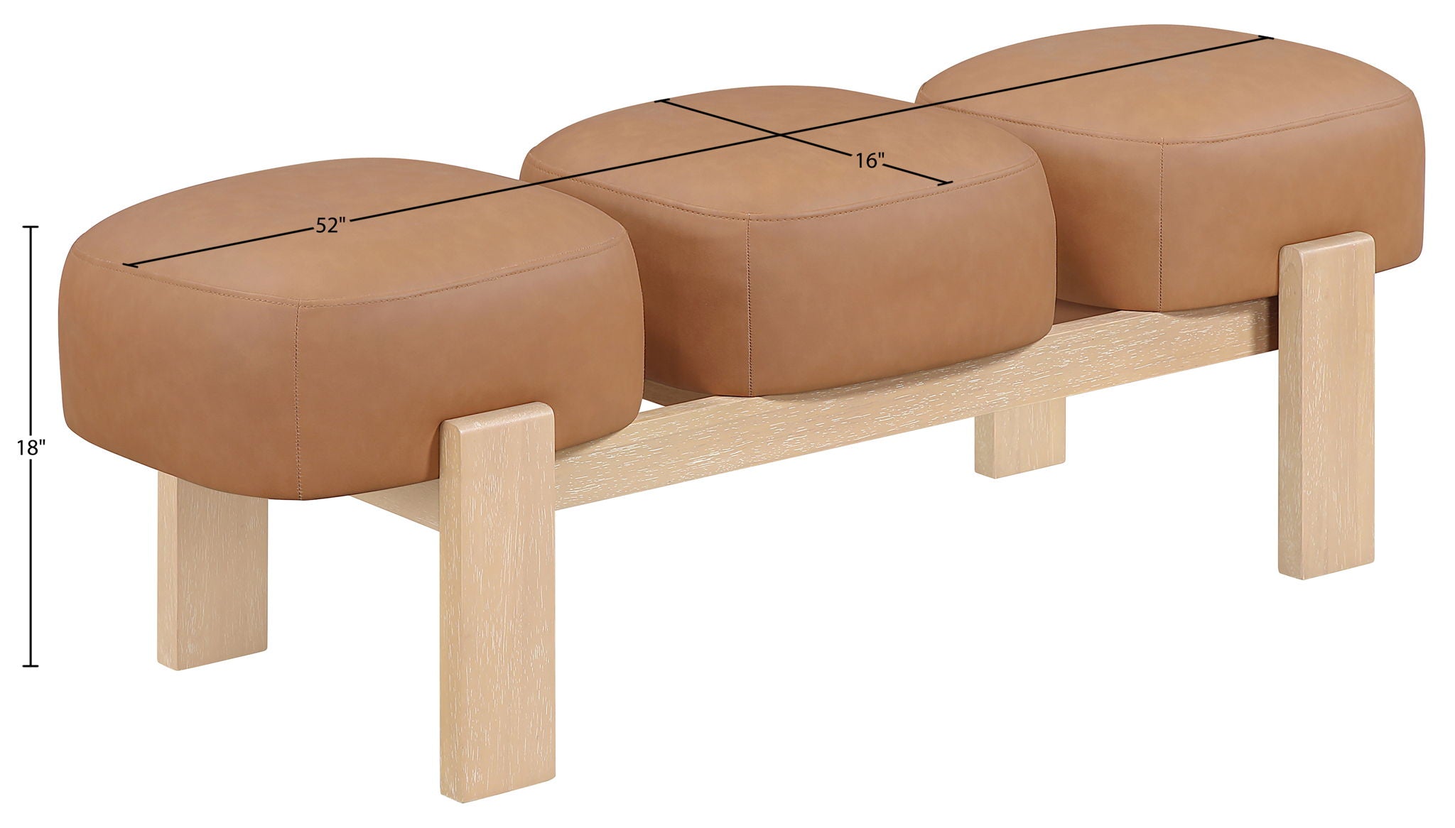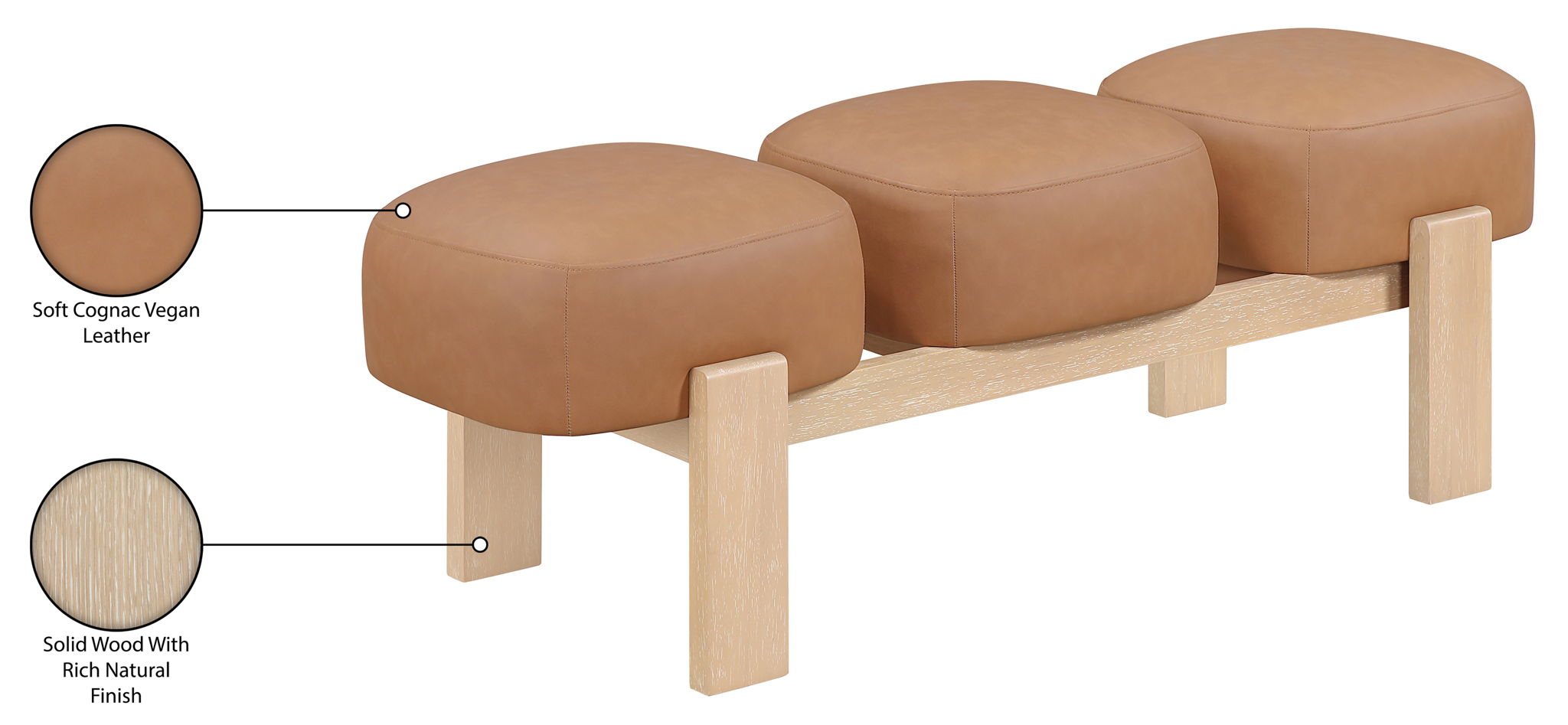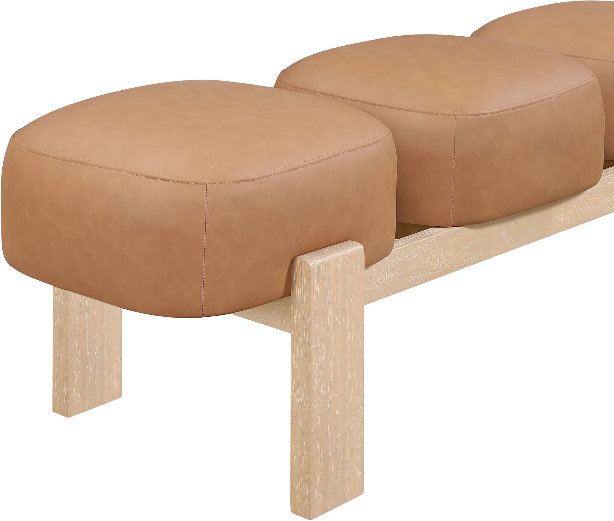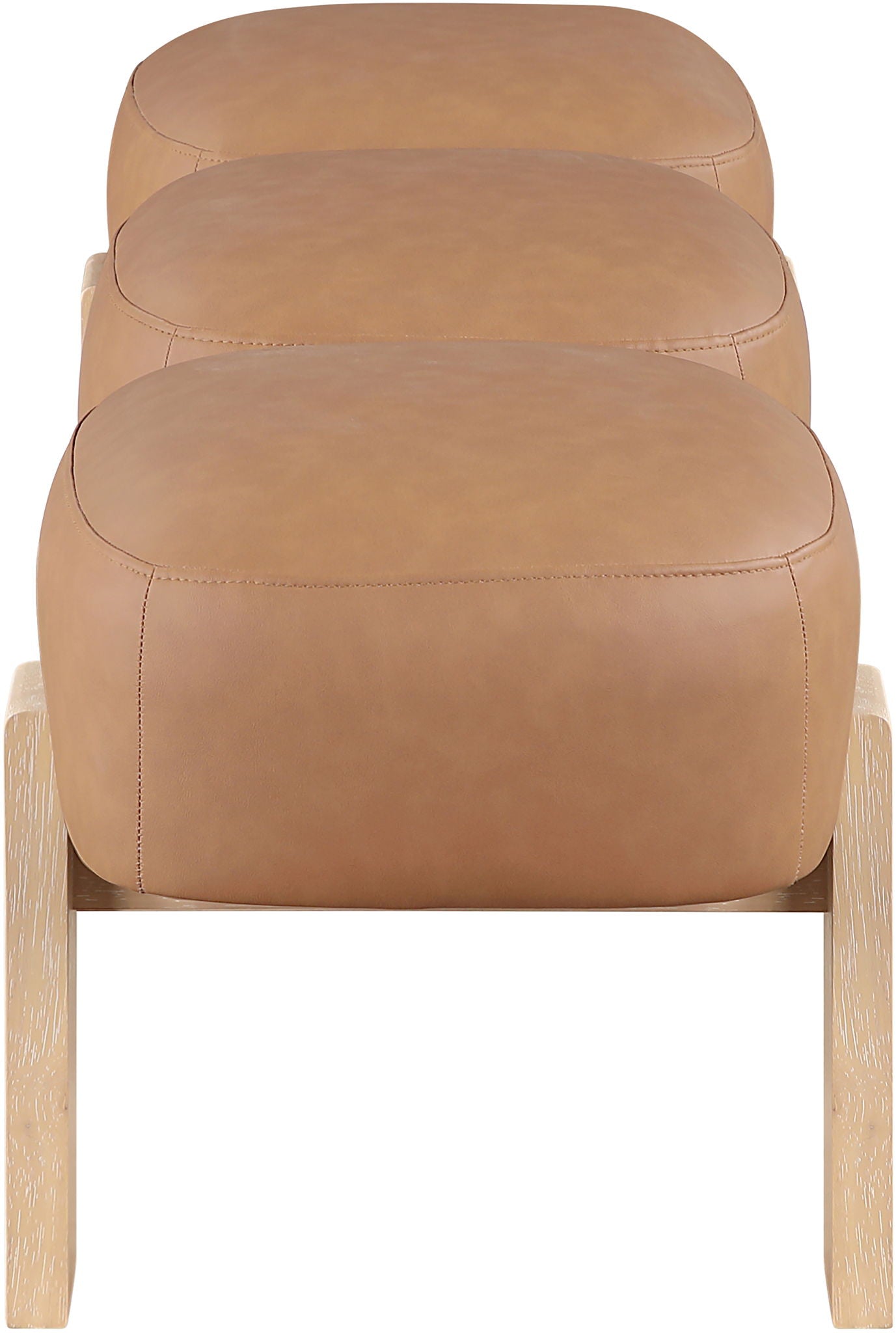Woodcrest - Vegan Leather Upholstered Bench - Cognac / Painted Natural