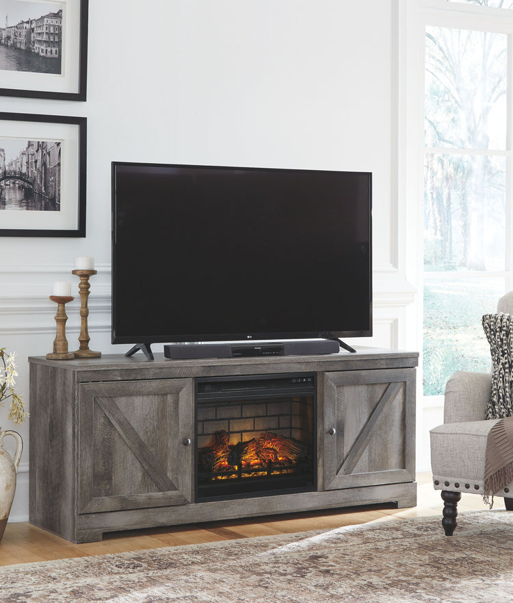 Wynnlow - 2 Pc. - 63" TV Stand with Faux Firebrick Fireplace Insert - Gray